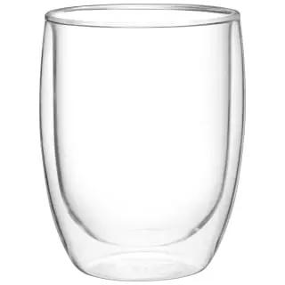 A beautiful double wall glass mug without a handle.